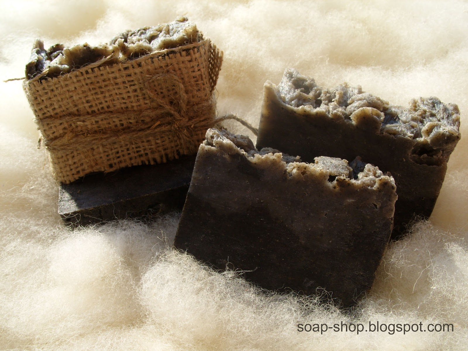Мыло двустороннее - одна сторона скраб с кофе, вторая сторона гладкое мыло с черной глиной.